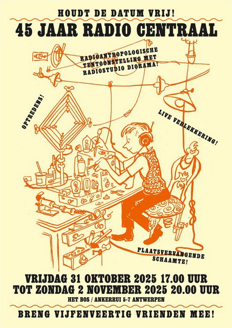 Eventjes vooraf een persbericht sturen naar RadioVisie, daar dachten ze helaas niet aan, maar dat neemt niet weg dat we de volstrekt unieke Antwerpse Radio Centraal bij deze nog hartelijk willen feliciteren met zijn 45-jarig bestaan. Vandaag, zondag 2 november, sluit Radio Centraal namelijk zijn driedaags jubileumfeest af in Het Bos in Antwerpen. De onafhankelijke en niet-commerciële zender viert er zijn 45ste verjaardag met een programma vol concerten, performances, documentaires, debatten en een overzichtstentoonstelling over 45 jaar eigenzinnige radio. Zelfs een nachtelijk snurkconcert stond op het programma. Sinds 1980 biedt Radio Centraal een podium aan muziek en stemmen die elders niet aan bod komen – “luidkeels ongehoord”, zoals de zender het zelf zegt. Tijdens het feestweekend pleitte de zender – zeer terecht – ook voor de invoering van een officieel statuut voor gemeenschapsradio, dat volgens Europese aanbevelingen meer erkenning moet krijgen.