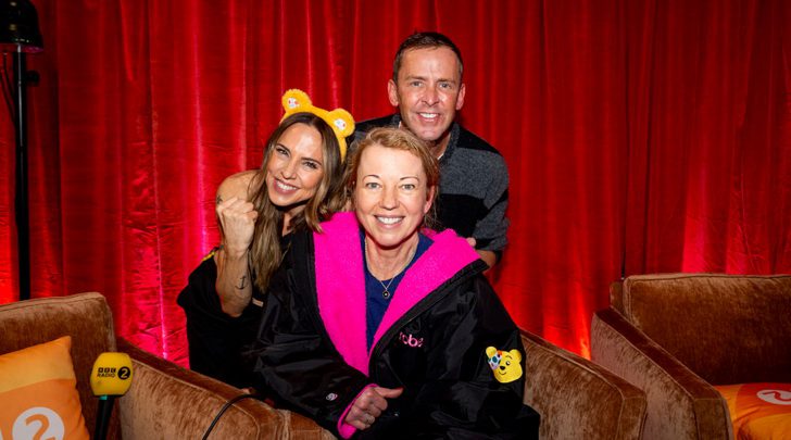 BBC Radio 2-presentatrice Sara Cox (50), al bijna dertig jaar een van de beste Britse radiochicks, heeft vrijdag een knotsgekke maar loodzware Great Northern Marathon Challenge succesvol afgerond. Vijf dagen na elkaar liep ze een marathon – door regen, wind en absurd steile hellingen – van Kielder Forest tot Pudsey, telkens aangemoedigd door truckers met toeters, kinderen met knutselbordjes en zelfs een overvliegende Red Arrow. Onderweg bleven de donaties volop binnenstromen, met updates van collega-dj’s en zelfs een videoboodschap van prins William. Aan de finish werd ze, compleet uitgeput maar dolgelukkig, opgewacht door Melanie C, die er spontaan een Spice Girls-miniconcert van maakte. Het resultaat: een verbluffende 7,65 miljoen Britse pond voor Children in Need en een trotse natie die massaal meeleefde met elke pijnlijke, natgeregende mijl. (foto boven: Sara Cox met Mel C en Scott Mills, BBC)